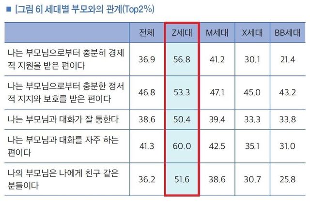 z세대는 기존 세대랑 다르게 부모랑 친구처럼 지내고 하는 경우가 많음