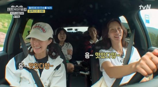 이날 멤버들은 돌로미티 테라스 전망대로 향하는 길에 차 안에서 김밥을 나눠먹었다. 라미란은 "어디 명절 때 어디 내려가는 거 같다. 자매들이"라며 밝혔고, 이세영은 "귀성길에"라며 맞장구쳤다.