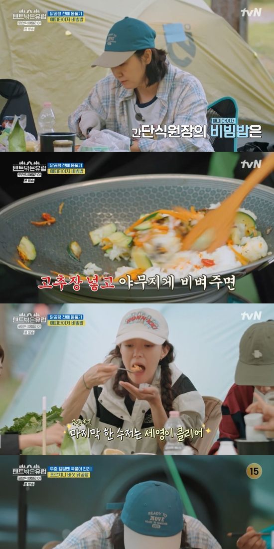 라미란은 "저거 또 끓이려면 오래 걸릴 텐데. 밥 남은 게 있지, 우리. 아주 조금. 이걸 어떻게 해서 먹을까 봐"라며 밝혔고, 곧바로 비빔밥을 만들었다. 멤버들은 완성된 비빔밥을 순식간에 동냈다.