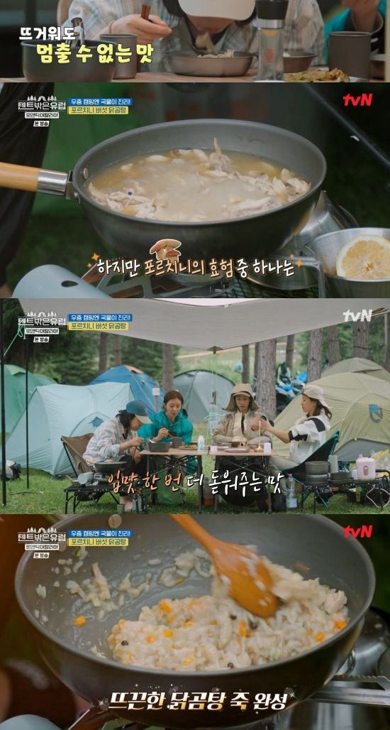 특히 멤버들은 포르치니 버섯 닭곰탕과 겉절이로 저녁 식사를 했고, 마침 비가 내리기 시작해 빗속에서 뜨끈한 국물을 먹고 감탄했다.