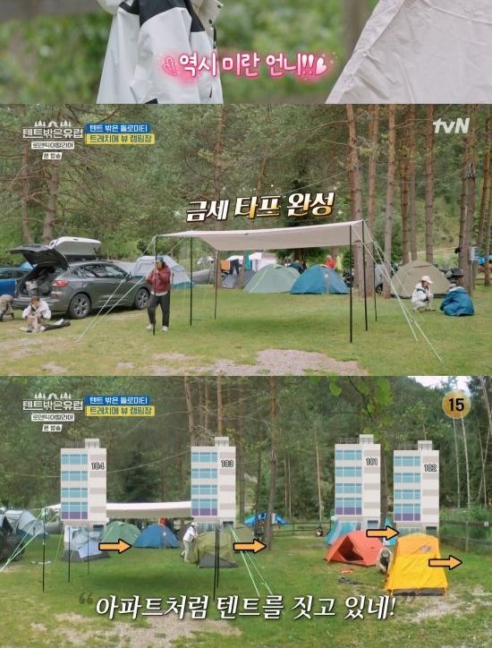 12일 방송된 tvN '텐트 밖은 유럽-로맨틱 이탈리아 편'(이하 '텐트 밖은 유럽')에서는 라미란, 곽선영, 이주빈, 이세영이 트레치메 뷰 캠핑장에 방문한 장면이 전파를 탔다.