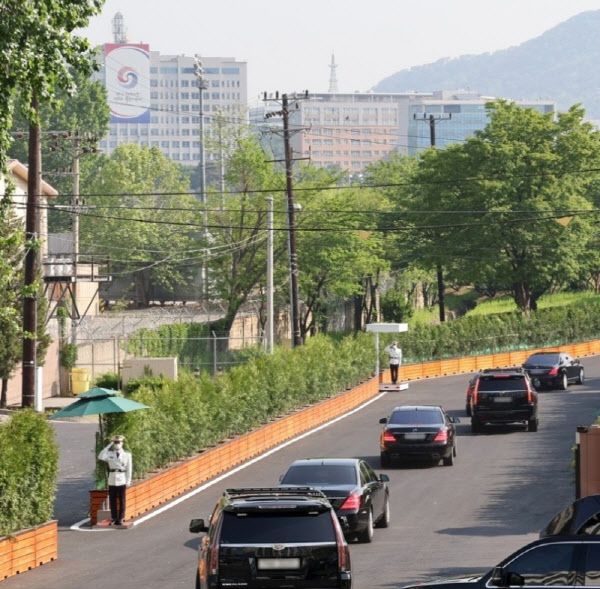 이어 9시 42분에는 또 승용차 4대와 승합차 3대가 관저 입구를 출발했다. 이 차는 5분 뒤인 9시 47분에 대통령실에 도착했다.