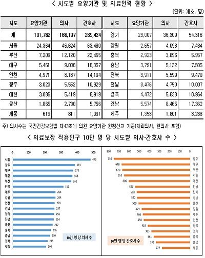 10만 명 당 시도별 간호사 수는 광주 754명, 대구 678명, 부산 670명 순이다.