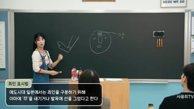 그 이유가 야쿠자 때문에 그런 것 아니냐는 말에 그것도 일부 맞다며 “옛날 사람들이 나쁜 사람들의 이마에 악할 惡이란 한자를 쓰거나 발목에 선을 그었다고 한다”라고 문신을 통한 죄인 표시법을 언급했다. 에도시대 일본에선 죄인을 구분하기 위해 이마에 惡을 새기거나 발목을 선을 그었다는 것.