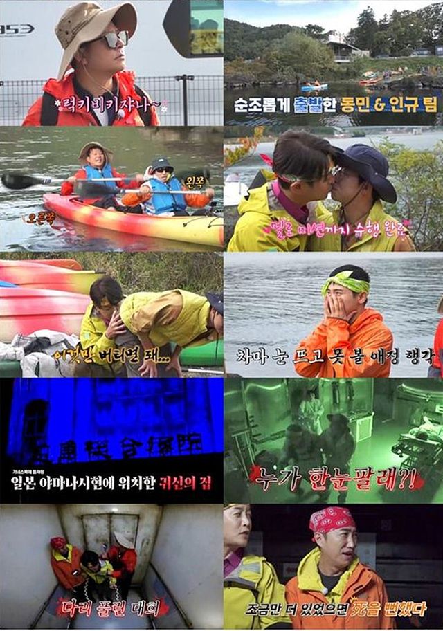 또한 그는 카약 대여 비용을 건 순서대로 동작을 외우는 ‘산 넘어 산’ 게임에서도 독박을 면하며 기쁨을 맛봤다. 그 가운데 김준호는 직접 상대 입술에 입을 맞추는 파격적인 동작으로 멤버들을 혼돈에 빠트렸다.