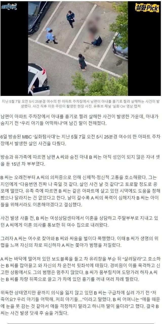 화난 남편을 피해 차로 도망갔으나 보도블럭으로