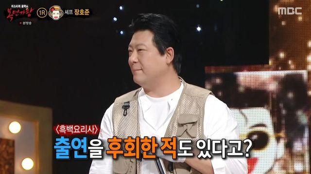 김성주가 “무한요리지옥 미션에서 탈출하듯이 집에 갔다”라며 당시 심경을 묻자 장호준 셰프는 “당시엔 정서가 좀 안 좋았던 것 같다. 새로운 걸 만들어야 하고, 30분이 주는 압박감이 있었다. 재미있는 스트레스였던 것 같다”라고 밝혔다. ‘흑백요리사’ 출연을 출연을 후회한 적도 있다는 그는 “최현석, 오세득, 여경래 셰프 등이 오셨는데, 올라가니 더 많이 있었다. 할 수 있을까란 압박이 있었다”고 밝혔다.