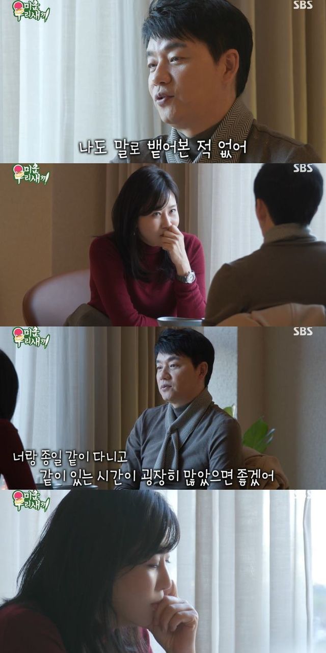 이를 본 오윤아는 “거의 연인인데?”라며 설레어했다. 김승수는 양정아가 좋은 이유로 ‘아기 같다’고 꼽았다. 그는 “정아가 나랑 동갑인데 가끔가다가 기분 좋으면 애교 있는 행동들을 한다. 그럴 때마다 되게 귀엽고 지켜주고 싶다는 생각이 든다”라고 말했다.