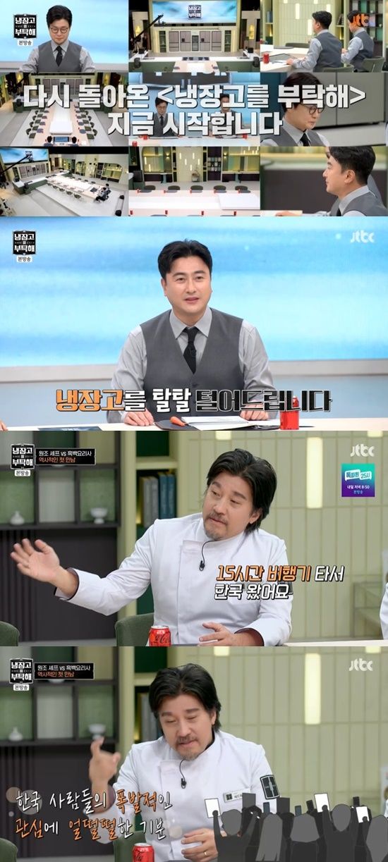 김성주와 안정환은 게스트 등장 전 "현 시점에서 가장 핫한 셰프들을 모셨다"며 8인의 셰프 군단을 소개했고 과거 '냉장고를 부탁해'에 출연했던 이연복, 최현석, 김풍, 정호영이 원조 셰프로 먼저 등장했다.