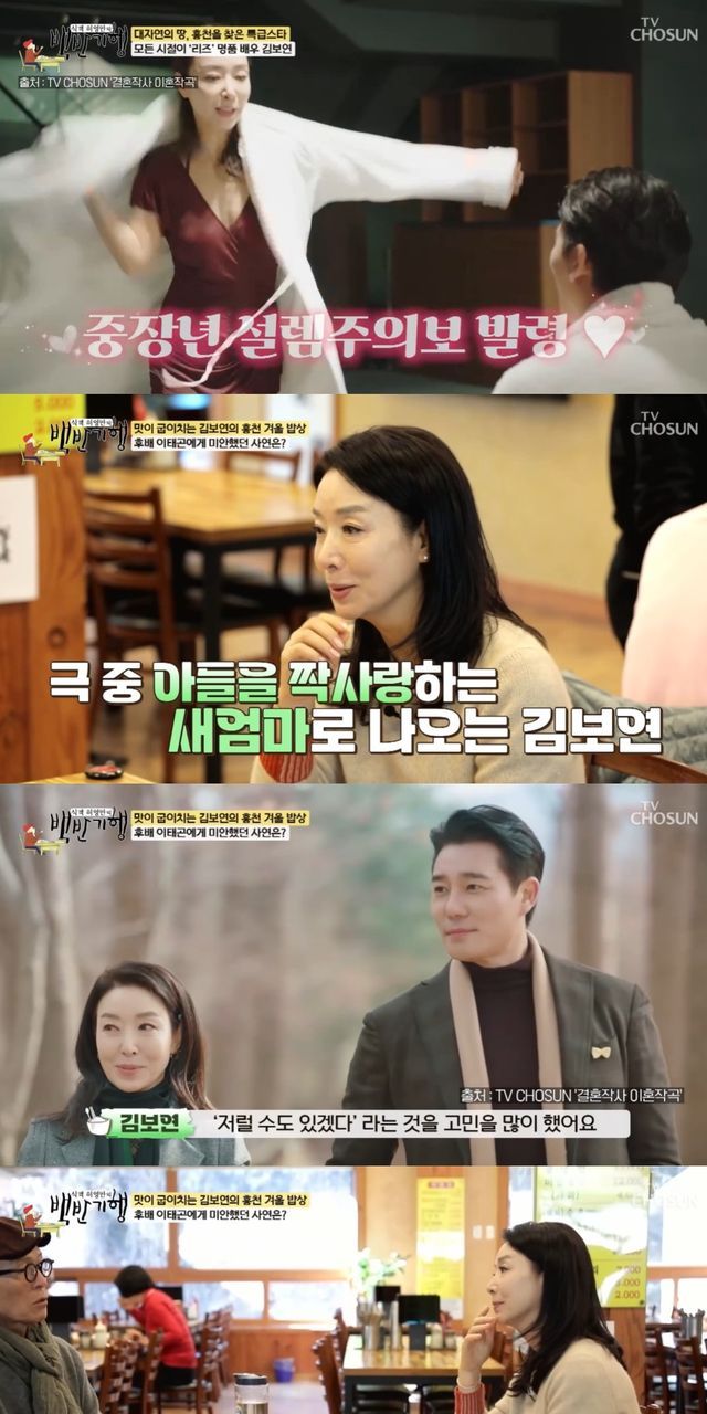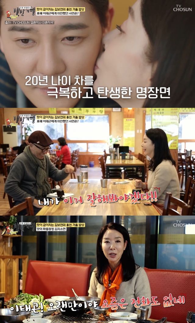 김보연은 "이태곤. 오랜만이다. 요즘은 전화도 없네"라고 돌직구를 날리며 "'백반기행' 나오게 됐는데 정말 편안하고 좋다. 근데 나도 모르게 내 마음이 술술 나와서 곤란할 때도 있다"며 대신 러브콜을 보냈다.