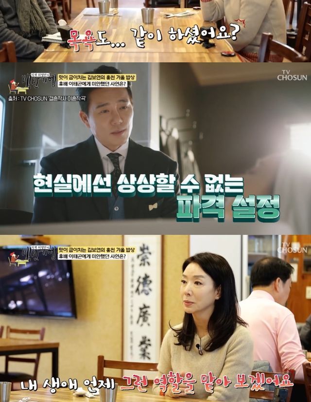 이에 허영만은 "목욕도 같이 했냐"며 파격 신에 대해 언급했고, 김보연은 놀라며 "목욕 같이 안하고, 몸 담그고 있는데 아들이 들어온다"고 정정했다.