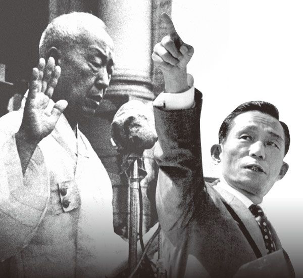 ▲ 이승만과 박정희는 대한민국의 초대와 세 번째 대통령으로, 각기 다른 시대에 국가를 이끌었습니다. 이승만은 1948년부터 1960년까지 재임하며 대한민국의 건국과 반공주의 정책을 주도했습니다. 박정희는 1963년부터 1979년까지 재임하며 경제 발전과 산업화를 추진했습니다. 두 지도자는 모두 반공주의를 강조했으나, 정책과 통치 방식에서 차이를 보였습니다. 이승만은 외교를 통한 독립운동과 민주주의를 지향했으며, 박정희는 군사 쿠데타로 집권하여 경제 성장을 우선시했습니다. 이러한 차이에도 불구하고, 두 지도자는 대한민국의 발전에 중요한 역할을 했습니다.