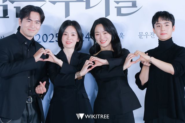 16일 오전 CGV 용산아이파크몰에서 열린 '검은 수녀들' 제작보고회에 참석한 배우 이진욱, 송혜교, 전여빈, 문우진이 포즈를 취하고 있다. / 위키트리 강은지 기자