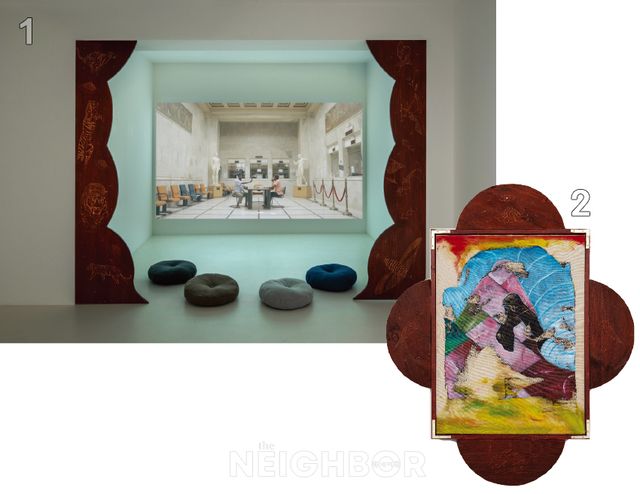 1 토미야스 라당, <올드 소울 – 뉴 소울>, 에스더쉬퍼 서울, 2024. Courtesy the artist and Esther Schipper, Berlin/Paris/Seoul. Photo ©Hyun Jun Lee 2 토미야스 라당, ‘Pyé Kanté, Joué’, 2024, Oil on linen with hand-carved wooden artist frame, 121×100.5×4(framed). Courtesy the artist and Esther Schipper, Berlin/Paris/Seoul. Photo ©CHROMA