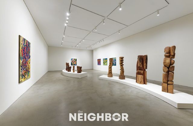 올해 초, (약간의 과장을 보태) 모든 매체가 김윤신 개인전을 2024년 주목해야 할 콘텐츠로 선정했다. 지난 1년간 수많은 기사가 작성된 건 당연지사. 이로 인해 지금 여기에서 흘러간 시간을 소환하는 게 매우 부담된다. 그럼에도 미사여구 없이 한마디로 끄적인다면, 작가의 ‘생애 첫 주요 상업 갤러리 개인전’에선 사람 냄새가 났다. 전시는 ‘서로 다른 둘이 만나 상호작용을 통해 하나가 되며, 그 합이 다시 둘로 나뉘어 각각 또 다른 하나가 된다’라는 ‘합이합일 분이분일(合二合一 分二分一)’ 개념을 중심으로 진행됐다. 이를 명징하게 설명하는 건 지면 한계상 어렵고, 개인적으로는 전시장을 거닐면서 ‘너와 나, 그리고 우리’라는 감정을 강하게 느꼈다. 단상에 있는 나무 조각들이 마치 인간 군상이 대화하는 모습처럼 다가왔기 때문이다. 미술 변방인 아르헨티나에서 축적한 40년의 삶이 외로워서였을까. 김윤신 작가의 나무 조각과 마주하는 동안 인간의 연약한 감정이 불쑥 찾아온지라 여전히 당시 국제갤러리의 분위기가 감치고 잊히질 않는다. _ 박이현 <럭셔리> 피처 디렉터