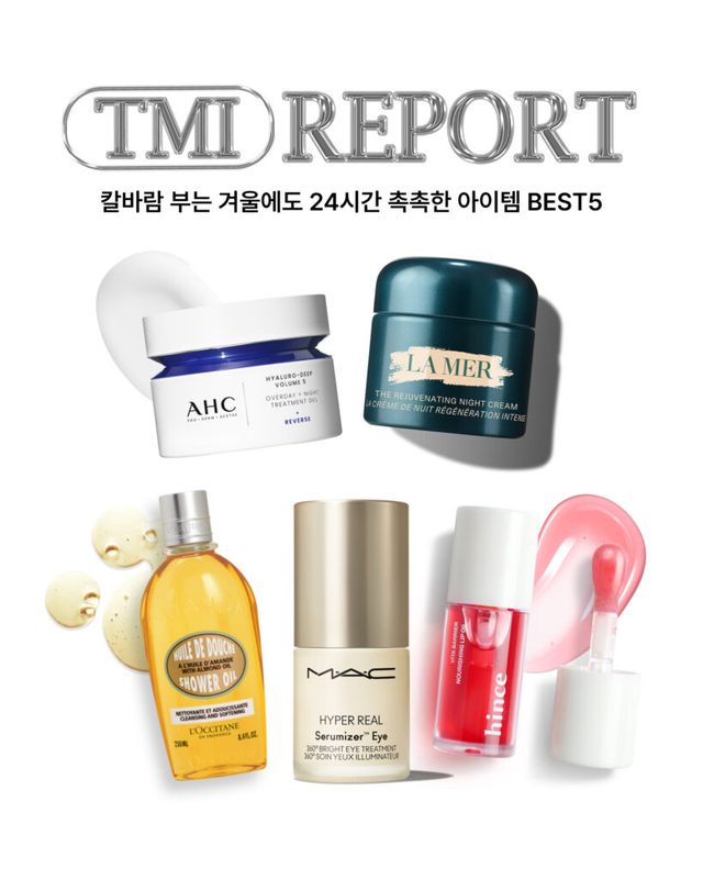 매일 아침 영하의 온도를 체크하고 출근 길을 나설 때마다 가장 무서운 건 바로 세차게 부는 칼바람! 차고 건조한 바람으로 인한 피부 자극과 건조함까지 느끼는 ‘윈드 번’을 막으려면 그만큼 촉촉하고 보습감이 확실한 제품으로 피부 자극을 줄여주는 것이 핵심입니다. 오늘의 TMI 리포트는 추위에도 끄덕없이 24시간 촉촉한 아이템 5가지를 살펴 볼 예정이에요.