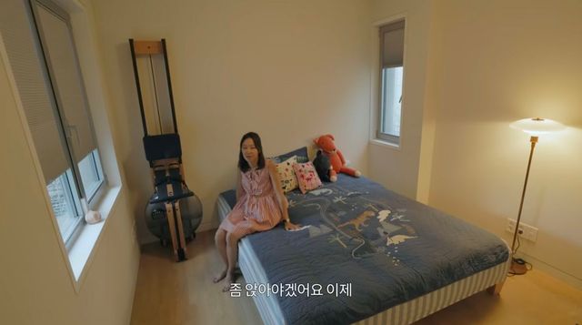 게스트룸이 나와요. 남편이 미국 이중 국적인 만큼 미국에서 손님이 올 경우를 대비했다고 하는데요. 귀여운 패턴의 침구 옆에 전신 운동을 할 수 있도록 노르딕의 로잉 머신도 두었다고. 공간이 모자라서 둔 줄 알았더니 효진은 다 생각이 있었군요.
