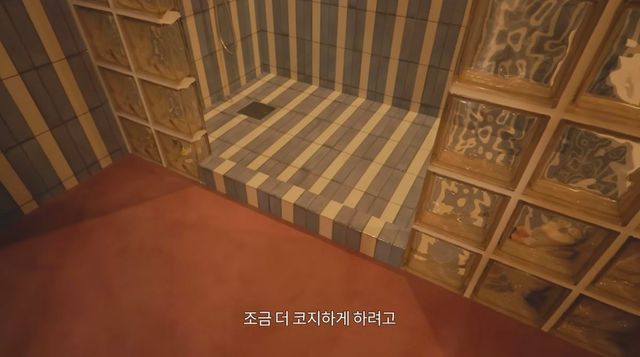 여긴 영화 세트장 아니에요? 베이비 블루 스트라이프 샤워 부스에서 씻은 뒤, 부드러운 단청색 카펫을 사뿐히 밟고 나올 수 있는