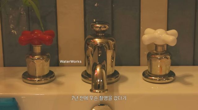 화장실입니다. 특히 세심하게 신경쓴 아이템은 바로 워터웍스의 수전 꼭지인데, LA 촬영 중 단단히 반해 한국에 돌아온 뒤 직접 수소문했다고 해요. 꼭 애니메이션에 나올 법한 통통한 수도꼭지죠?