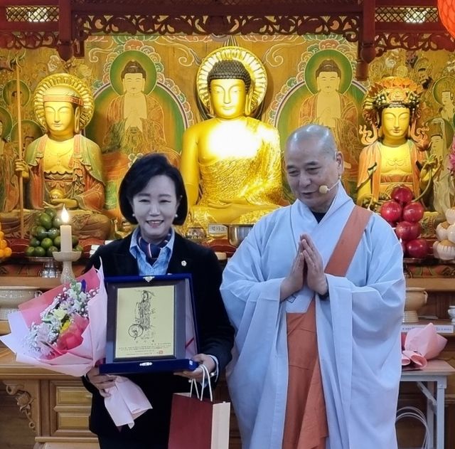 경기도의회 부의장 정윤경(더불어민주당, 군포1) 도의원은 12월21일 대한불교조계종 ‘정각사 23주년 개산(開山)’을 맞이하여 감사패를 받았다.(사진=경기도의회)