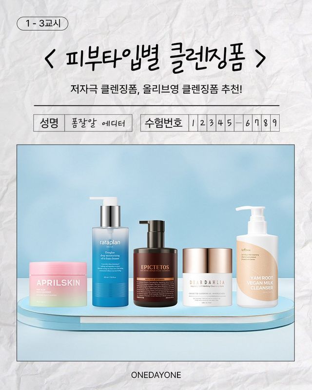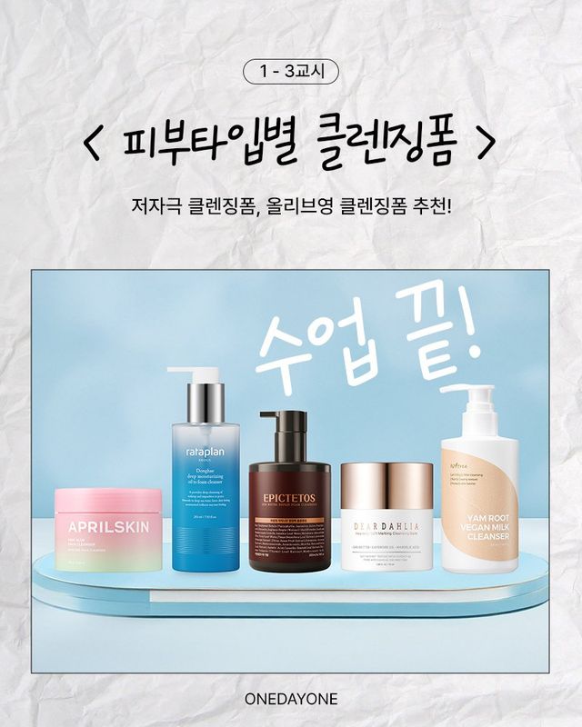 자극이 적고 순한 성분을 기본으로 하되, 각 피부 타입별 맞춤 솔루션을 제공하는 제품들로 좋은 폼클렌징 하나만 잘 골라도 피부가 한층 건강해질 수 있으니 1교시부터 3교시까지 함께 보며 오늘부터는 나에게 딱 맞는 클렌징폼을 찾아보자.