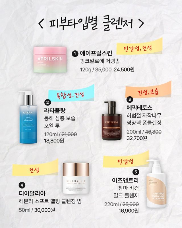 소개하는 이 5가지 제품들은 전부 [저자극/고보습/딥 클렌징]에 특화된 제품이다.