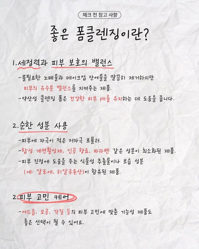 건성 피부 : 세안 후에도 촉촉함을 유지하는 보습 성분이 담긴 폼클렌징을,