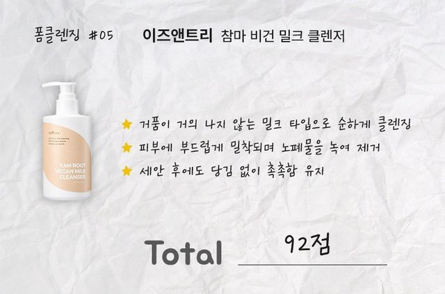 5. 이즈앤트리 - 참마 비건 밀크 클렌저