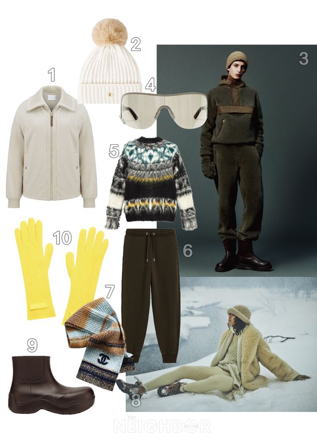 3, 8 Loro Piana 로로피아나의 아이코닉한 캐시미어 자카드, 시어링 소재를 사용해 가볍고 따뜻한 아프레 스키 컬렉션.