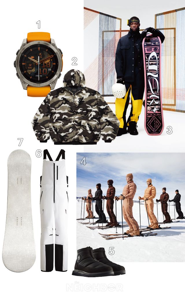 7 Louis Vuitton 퍼렐 윌리엄스의 아이코닉한 다모플라주 패턴을 부분 적용한 남성 스키 컬렉션. 지속 가능한 소재를 사용했다.