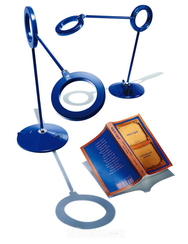 곁에는 독서등으로 라문의 아물레또 조명을 두는 건 어떨까. 시력 보호를 위해 전자파를 최소화한 원형 램프라 눈이 편안하다. 간결하고 아름다운 디자인은 물론 진한 파랑과 신비로운 반투명 블루 컬러에 자꾸만 눈이 갈 것이다.