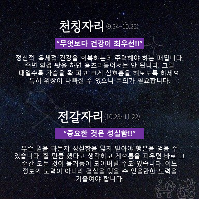 Δ 천칭자리 : 무엇보다 건강이 최우선!!