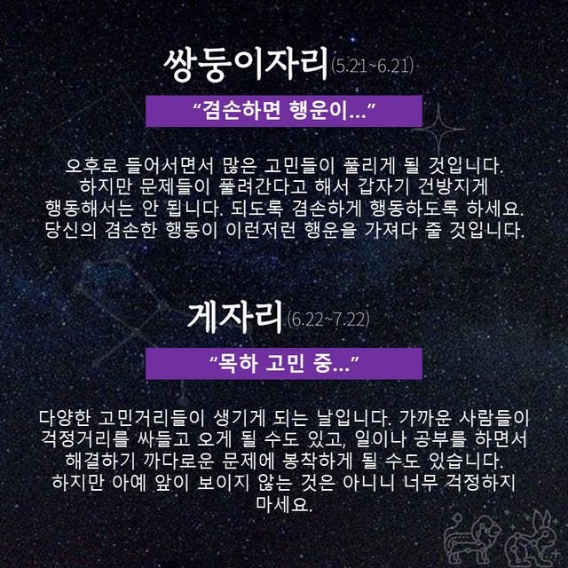 Δ 쌍둥이자리 : 겸손하면 행운이…