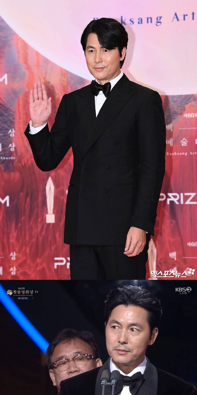 결국 청룡영화상에는 참석했지만 레드카펫은 패싱했다. 영화 '서울의 봄' 최다관객상을 수상하기 위해 무대에 오른 정우성.