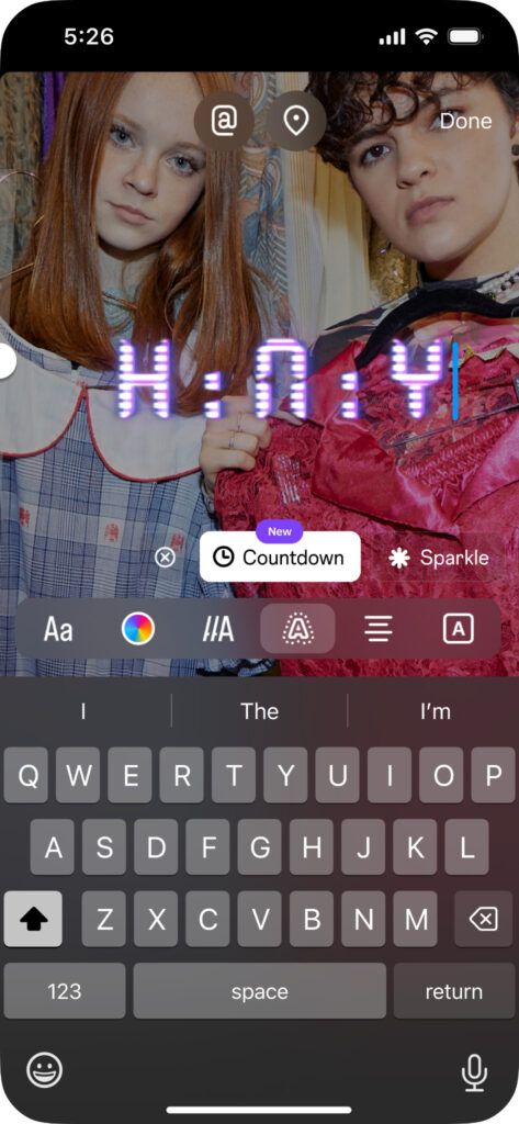 새롭게 추가된 폰트와 텍스트 애니메이션 효과를 스스토리와 릴스, 피드에 모두 적용할 수 있는 기능도 만나볼 수 있는데요. 새롭게 추가된 ‘New Year’ 폰트와 ‘Countdown’ 텍스트 애니메이션 효과를 사용해 나만의 문구로 연말과 새해를 기념할 수 있습니다. 빈티지한 디지털시계를 연상시키는 폰트와 효과가 향수를 자극하는 분위기를 자아내네요.