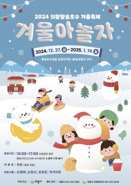 [와이뉴스] 2024 의왕왕송호수 겨울축제 ‘겨울아 놀자’가 12월 27일부터 왕송호수공원 공영주차장(왕송못동로 307)에서 열린다.