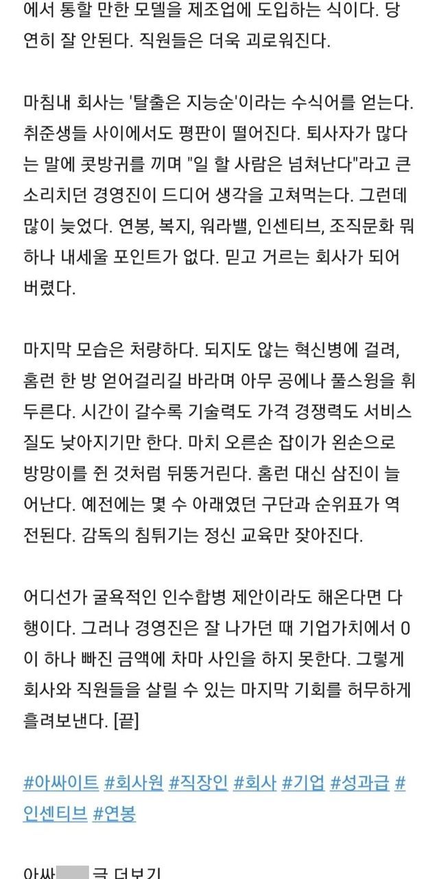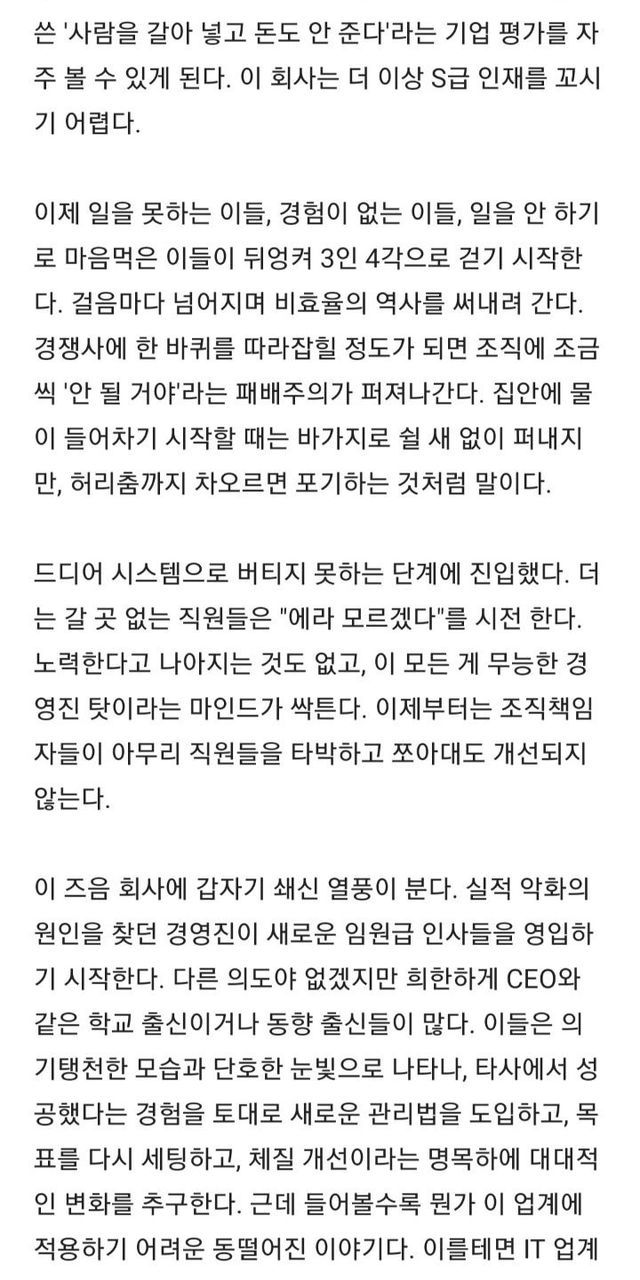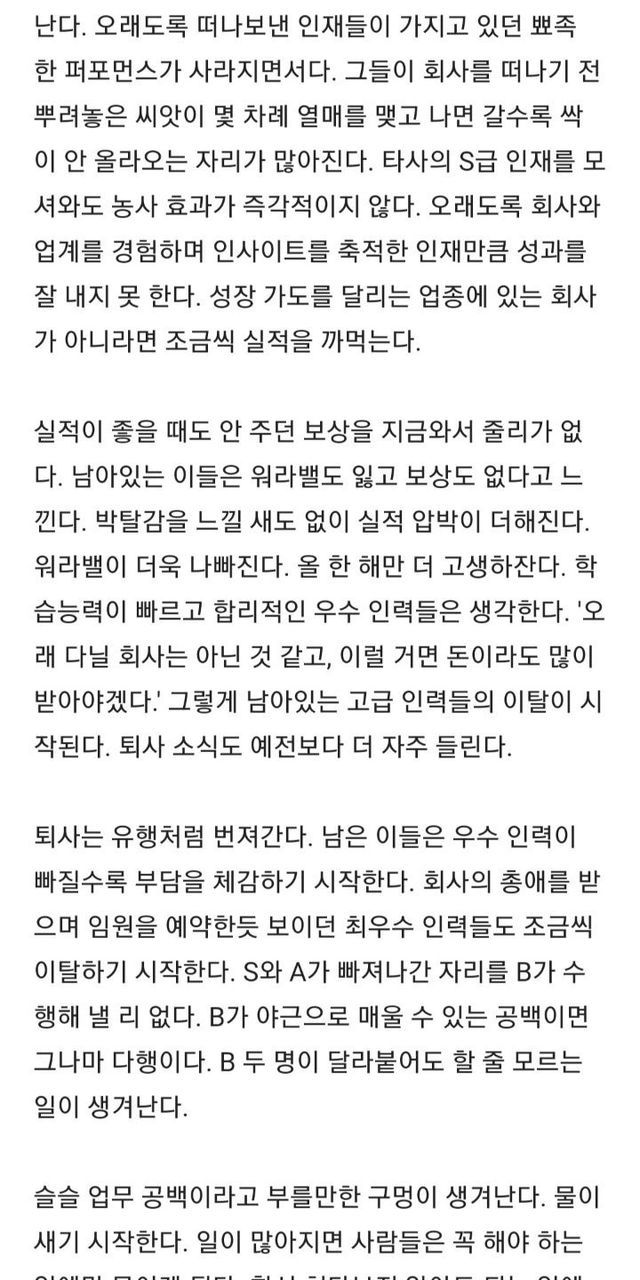 직원 귀한 줄 모르는 회사가 몰락하는 과정