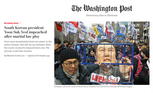 "한국 대통령 윤석열, 계엄령 모의 후 탄핵"