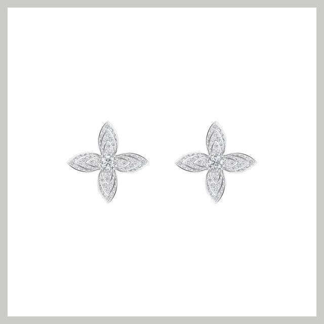 루이 비통의 모노그램 플라워를 우아하고 현대적 감각으로 재해석해 선보이는 이딜 컬렉션의 이어링입니다 1896년에 고안된 후 시대를 초월하는 시그너처 모티브가 반짝이는 다이아몬드로 새롭게 재탄생한 것. 여러 겹으로 레이어링 된 꽃잎의 강렬한 볼륨감이 대담하고 당당한 매력과 함께 고급스러운 분위기를 자아내 줄 거예요.