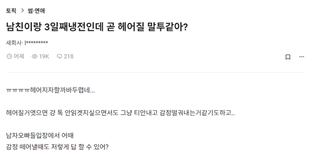 남친이랑 3일째냉전인데 곧 헤어질 말투같아?
