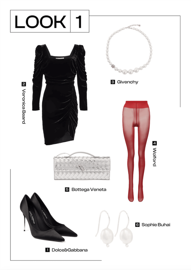 세련된 연말 스타일링을 완성하고 싶다면 블랙 벨벳 원피스와 레드 컬러 스타킹 조합을 추천할게요. 벨벳 소재 특유의 고급스러움과 강렬한 레드 컬러 포인트가 멋스럽게 어우러져 클래식하면서도 트렌디한 분위기를 연출할 수 있습니다. 여기에 블랙 컬러 스틸레토 힐은 우아한 실루엣을 강조해 주고, 실버 컬러 가방은 은은한 빛을 더해 스타일에 생기를 불어넣어 줄 거예요. 액세서리는 심플하면서도 고급스러운 진주 목걸이와 귀걸이로 마무리해 보세요. 전체적으로 조화로운 컬러와 텍스처가 어우러져 연말 파티 룩으로 제격이죠.