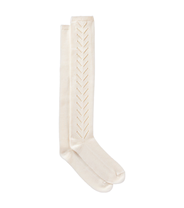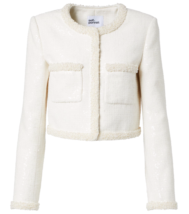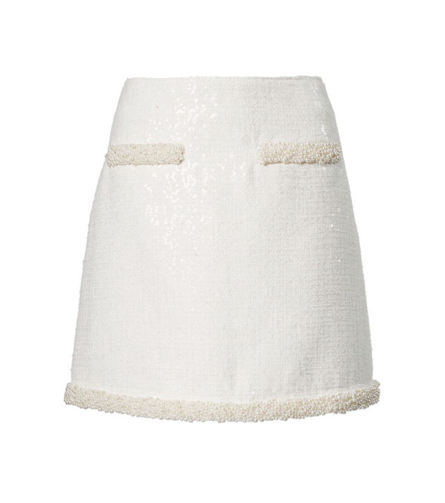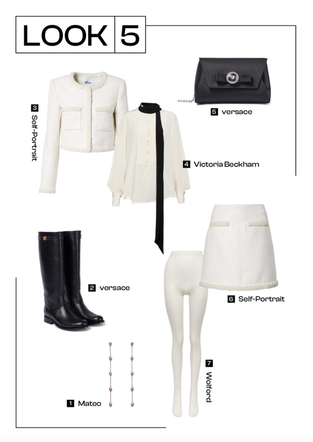 연말룩을 완성하기 위한 가장 간단한 방법은 셋업을 활용하는 겁니다. 새하얀 눈을 닮은 화이트 트위드 재킷과 스커트에 레이스 패턴이 돋보이는 화이트 컬러 스타킹으로 올 화이트 룩을 완성해 보세요. 화이트 컬러가 분위기를 더욱 화사해 보이게 만들어 주는 것은 물론, 트위드 소재 특유의 우아한 분위기와 레이스 스타킹이 주는 로맨틱한 무드가 연말을 더욱 특별하게 만들어 줄 거예요. 여기에 백과 슈즈는 블랙 컬러로 통일해 쿨한 무드까지 가미해 준다면 손쉽게 연말룩을 완성할 수 있죠.