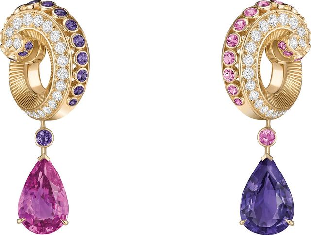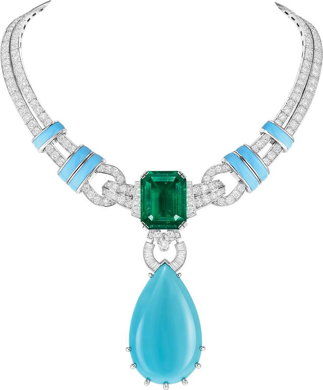 반클리프 아펠의 항해의 역사는 콜럼버스가 등장하기 이전으로 돌아간다. 미지의 동양 문화에서 영감을 받은 이어링과 콜럼버스 이전 시대의 신과 여신을 형상화한 클립 같은 다양한 문화적 기원을 반영한 작품들이 선보였다. 이를 통해 메종이 이야기하는 보석의 세계는 단순히 금과 스톤에만 머물지 않고, 다양한 문화적 기원의 보물로 컬렉션을 확장하고자 한다. 랑테르네 미스테리유즈(Lanternes Mysterieuses) 네크리스는 변형 가능한 형태로 중국의 등불을 연상시키는 타원 형태의 볼이 이 미스터리한 주얼리를 확장시키는 키다. 그중 하나는 클래스프이며, 이 메커니즘은 미스터리 세팅 루비들이 적용된 표면 아래에 숨겨져 있다. 한 면에 버프 톱 루비, 다른 면에 다이아몬드와 버프 톱 사파이어가 장식되어 있어 네크리스에 펜던트를 걸거나 목 뒤로 넘겨 연출할 수 있다. 프리랜스 에디터/ 김민정