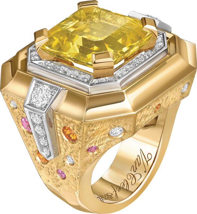 세 번째 챕터, ‘트레저 헌터’에서는 상상의 한계를 자유롭게 넘나든다. 반클리프 아펠의 상상력은 가장 흔한 보물의 상징인 골드와 스톤, 주얼리가 가득한 보물상자에 닿았다. 여기서 영감을 받은 코프르 프레시유(Coffre Precieux) 칵테일 링에는 골드를 중심으로 에메랄드, 루비, 사파이어가 세팅되어 있다. 보다시피 클래식하면서도 강렬하다. 이어 옐로 사파이어를 주제로 한 도르스타드(Dorestad) 링을 비롯해 인도에서 영감을 받은 다양한 링들이 이번 챕터를 아우른다. 또한 보물섬의 핵심인 지도를 표현한 카르트 오 트레저(Carte au Tresor) 클립은 방금 돌돌 말아 놓은 듯한 생생한 형상과 자연스러운 주름이 돋보이는 태슬이 메종의 세공 기술을 강렬하게 뽐내고 있다.