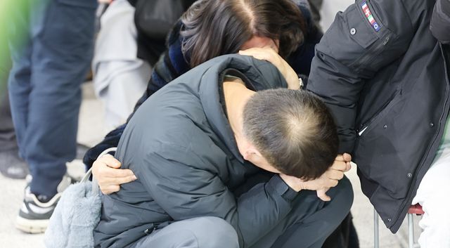 29일 전남 무안공항에서 사고가 난 제주항공 여객기 탑승객의 가족들이 오열하고 있다. 자료 사진 / 뉴스1