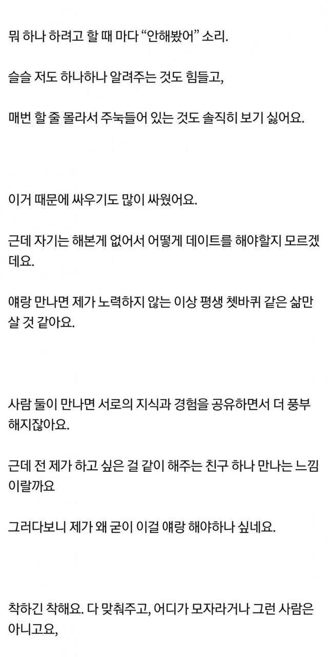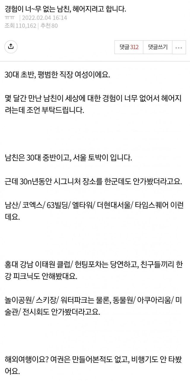 세상 경험이 너무 없는 남친과 헤어지려고 합니다