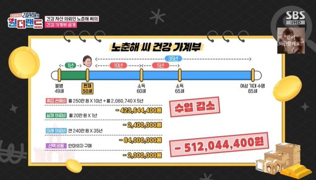 의뢰인의 건강자산은 마이너스 5억 천만 원이 넘었다. 이에 이종민 전문의는 “남 일 같지 않다. 제가 100kg이 넘었는데, 44kg을 뺐다. 제가 다이어트 성공하지 못했다면 제 건강 자산도 저것보다 마이너스가 심하게 나왔을 것 같다”고 밝혔다.