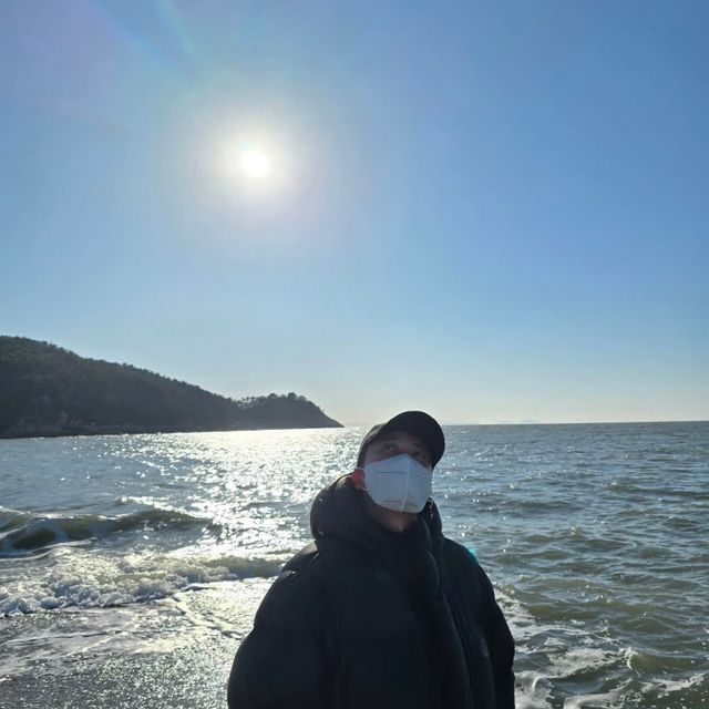 공개된 사진 속 전현무는 바닷가에서 맑은 하늘을 바라보고 있는 모습이다.