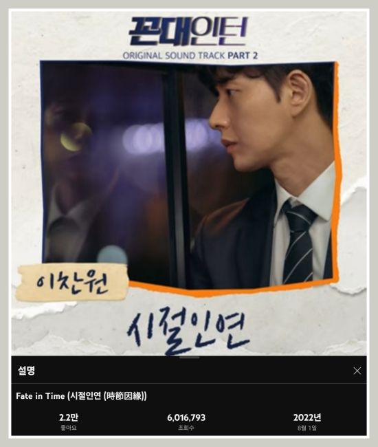 지난 2022년 8월 이찬원 공식 유튜브채널(또튜브)에는 드라마 '꼰대인턴'의 삽입곡 '시절인연(時絶因緣)' 음원이 게재됐다.