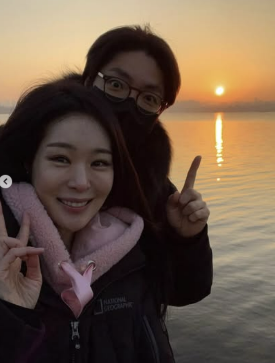 공개된 사진 속 미자는 남편 김태현과 일출을 배경으로 다정하게 포즈를 취하고 있다. 미자는 카메라를 향해 미소 지었고, 김태현은 떠오르는 해를 동그란 눈으로 가리켰다.